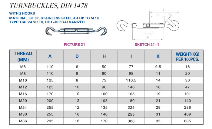TURNBUCKLES DIN1478 HOOK&HOOK