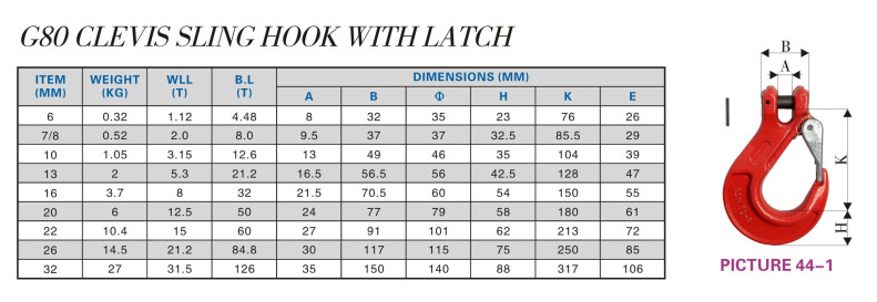 G80 CLEVIS SLING HOOK WITH LATCH